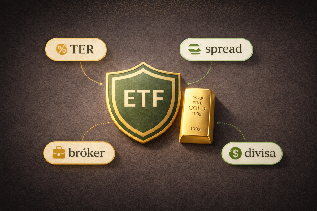 Muchos ETFs de oro cotizan en USD o siguen el oro en USD. Si compras desde España, el EUR/USD puede añadir coste y volatilidad: