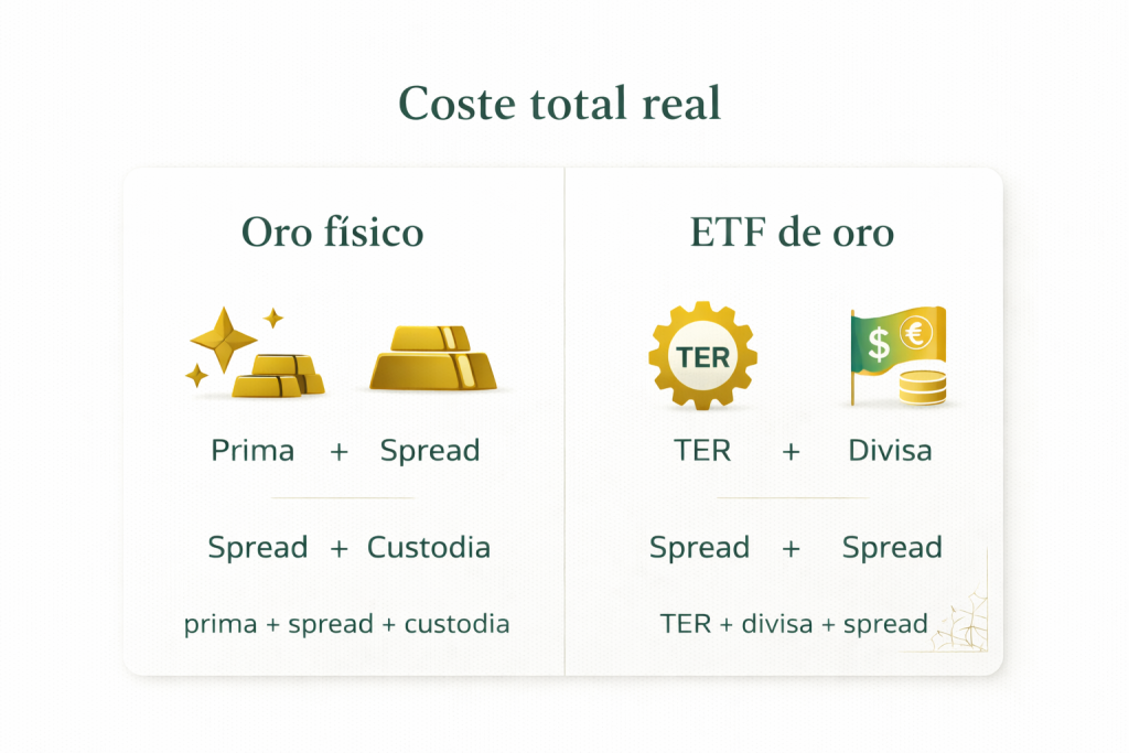 - Añadir ejemplos numéricos comparando coste anual de físico vs ETF a distintos importes (p. ej., 2.000 €, 10.000 €, 50.000 €).