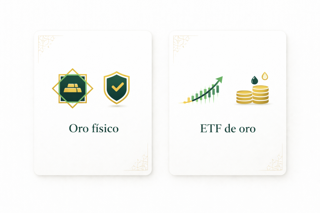 ETF de oro si valoras simplicidad y liquidez diaria: compras desde tu bróker, comisiones claras (TER), sin logística ni seguros. No posees el metal, sino un valor respaldado (según folleto).
